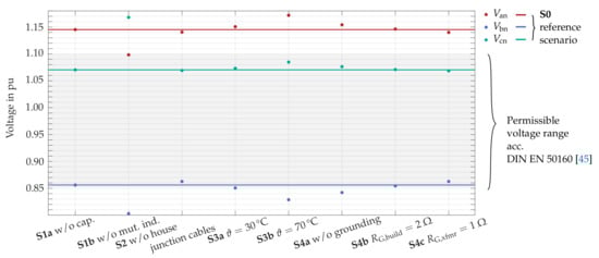 Furthermore, investigations show that temperature-dependent line resistances significantly affect voltage drops across lines (see Section 4.2). In addition, the load distribution and phase sequence play an important role (see Section 6.3). Both should be considered for worst-case studies on voltage quality.