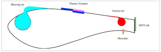 257. Blaylock, M.; Chow, R.; van Dam, C.P. Comparison of Microjets with Microtabs for Active Aerodynamic Load Control. In Proceedings of the 5th Flow Control Conference, Chicago, MA, USA, 28 June–1 July 2010; American Institute of Aeronautics and Astronautics: Reston, VA, USA, 2010. [Google Scholar] [CrossRef]