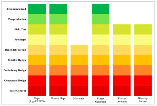 Figure 12. Technology Readiness Level (TRL) of various flow-control devices.