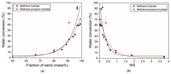 | Sand Type | mw/ms | WS | Water to Hydrate Conversion of (%) |