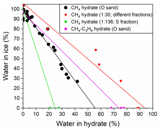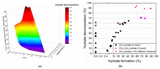 - Misyura, S. Dissociation of various gas hydrates (methane hydrate, double gas hydrates of methane-propane and methane-isopropanol) during combustion: Assessing the combustion efficiency. Energy 2020, 206, 118120. [Google Scholar] [CrossRef]
