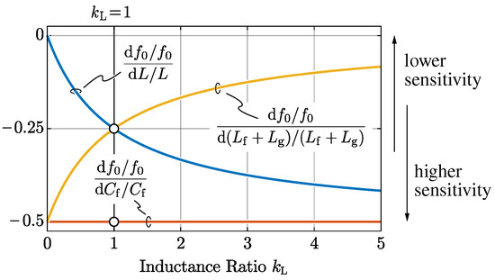 It is worth mentioning that the value of affects the filter sensitivity to the parameter variations, which may in turn affect the converter control stability. One of the most relevant indicators of the LCL filter performance, both from a control and an attenuation perspectives, is the filter resonance frequency . The per unit sensitivities of with respect to the per unit filter parameter variations can be obtained from (5), as in [33]: