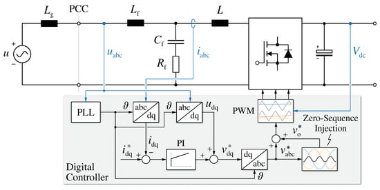 - Liserre, M.; Dell’Aquila, A.; Blaabjerg, F. Stability Improvements of an LCL-Filter Based Three-Phase Active Rectifier. In Proceedings of the IEEE Power Electronics Specialists Conference (PESC), Cairns, QLD, Australia, 23–27 June 2002; Volume 3, pp. 1195–1201. [Google Scholar] [CrossRef]