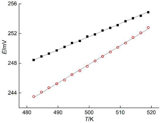 The Gibbs energies, enthalpies and entropies of reactions (R1) and (R2) can be calculated by applying the measured EMF of each ECCs as a function of temperature in the fundamental Equations (10)–(12):