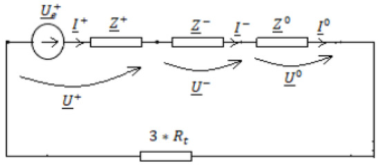 From relation (4) it results that the sequence schemes, in the case of a single-phase defect, are connected in series (Figure 3).