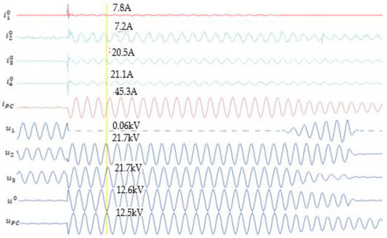 From the measurements made in the real 20 kV network, it resulted that the phase shift between the total capacitive current () of the 20 kV network and the zero-sequence voltage () of the 20 kV bars in the transformer station was 85.3°, and the phase shift between the current through the compensation coil and the zero-sequence voltage of the 20 kV bars in the transformer station was 86.6°.