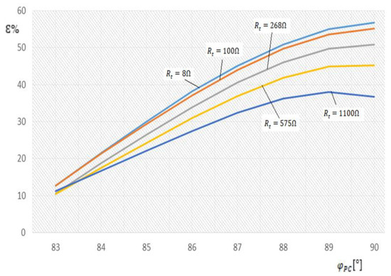 The values of the phase electrical resistance to earth of the zero-sequence capacitive reactance, if the phase shift values were between and , were 86°, 87°, 88°, 89°and 90°, respectively, which are presented in Table 3.