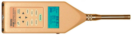 The currently applied measurement method of values characterizing noise in the working environment is specified in the PN-EN ISO 9612:2009 standard [6]. For the measurement of noises emitted at workstations, sound exposure meters were used, including the integrating Class 1 sound level meter, called the SON-50, by Sonopan (Figure 1), measuring transient, fixed and impulse signals. The SON-50 is mainly used for measurements of values determining the employee’s exposure to noise at the workstation, as well as environmental monitoring, and thanks to the possibility of attaching external octave or infrasound filters, it can be used for diagnostic tests of machines and equipment. It is a meter that enables the measurement of sound levels both at workstations and in the environment. It works in temperatures from −10 °C to +50 °C and up to 30% humidity, without measurement distortion results up to 150 dB, with a resolution of 0.1 dB and a basic error not exceeding ±0.7 dB. Due to the resolution, the results are given to one decimal place.