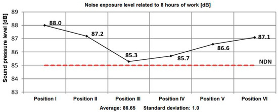 The research results for individual workstations were collected in the form of a table. Subsequently, for the obtained results and according to the methodology, the required calculations were conducted. As a result, the noise values were obtained and the risk of hearing damage at individual workstations was determined [29].