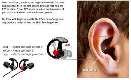 These earplugs are produced in three sizes (small, medium, large), although the vast majority of people use a medium size. The earplugs fit anatomically into the ear (matching the size of auricle) and stick very firmly, without disturbing. The method of putting on the earplugs is presented in Figure 5.