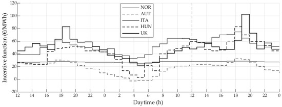 The incentive corresponds to the day-ahead price at the jth hour of the ith day, while is the average day-ahead price of the ith day. The MRC, which is the mean value of the absolute hourly differences between all daily hourly day-ahead prices divided by the mean value of the daily day-ahead prices, is calculated by