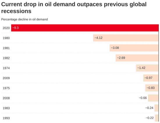The worst-ever drop in oil demand due to COVID-19, World Bank [9].