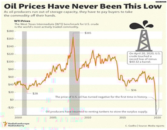 WTI plunges to −$37.63, a historic negative price [12]. Copyright (c)2020 RFE/RL, Inc. Reprinted with the permission of Radio Free Europe/Radio Liberty, 1201 Connecticut Ave NW, Ste 400, Washington DC 20036.