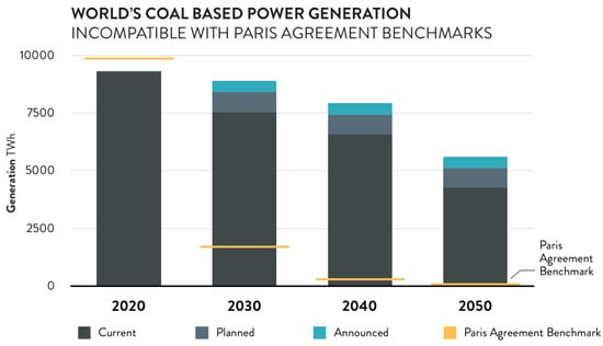 Future coal generation from current and planned coal power plants against Paris Agreement benchmarks, Reproduced with permission from Climate Analytics [26].