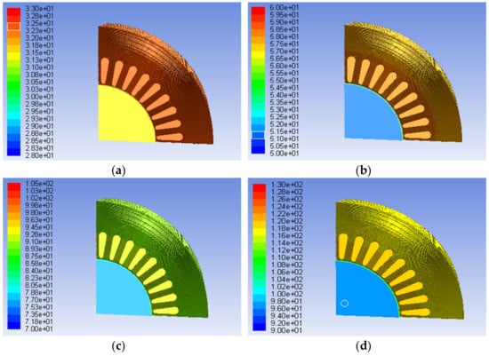 The convective heat transfer coefficient of the stator core end face, rotor core end face, and the outer surface of the casing are shown in Table 6 under the natural cooling conditions of the motor.