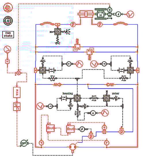 where T is the servo motor torque (Nm), F is the external load force of the hydraulic cylinder (N), V is the radial piston pump displacement (m3/rad), and A is the effective area of the hydraulic cylinder (m2).
