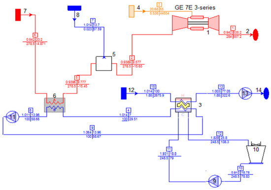 Thermoflex (part of THERMOFLOW software) is a well-known simulation software with a graphical interface, allowing the assembly of a thermal system model from icons representing more than 175 components. The program covers both the design and off-design simulation of real systems and models all types of power plants, including gas turbine, combined and conventional steam cycles. The simulation procedure is presented in [3,4].