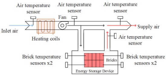 - Date, J.A.; Candanedo, J.A.; Athienitis, A.K.; Lavigne, K. Control-Oriented Modeling of an Air-Based Electric Thermal Energy Storage Device. Proceedings of ASHRAE Winter Conference 2018, Chicago, IL, USA, 20–24 January 2018. [Google Scholar]