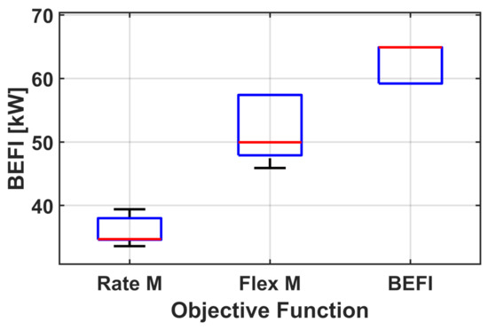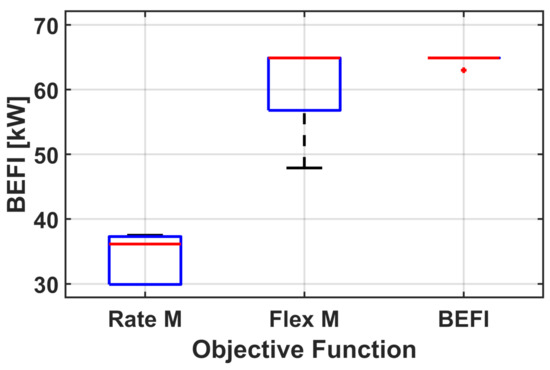 - Cost function using BEFI maximization during peak demand: the last optimization problem considered is using BEFI as the cost function. A BEFI is maximized during a specified period of the peak demand event.