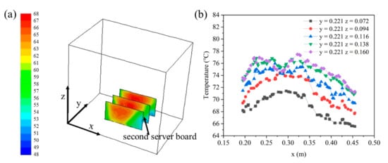 (a) Thermal map and (b) temperature distribution of the CPU server wallboard.