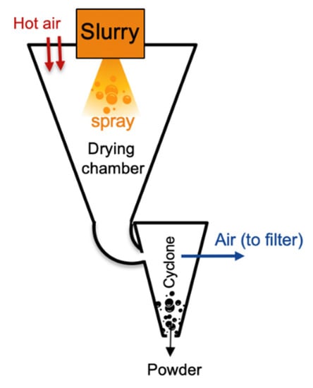 | Spray-drying | Review of most cathode chemistries (ethanol, water, or alcohol) | Vertruyen et al. [57] 2018 |