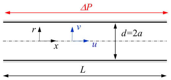 Schematic of the pipe-flow problem with coordinates and variables defined.