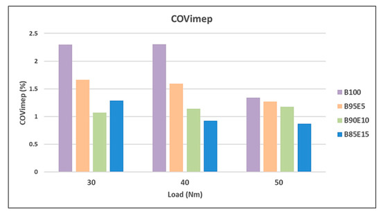 COVimep of blended fuels under loads of 30, 40, and 50 Nm.