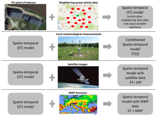 - The last models investigated are the spatio-temporal model which exploits satellite images, NWP forecasts or both.