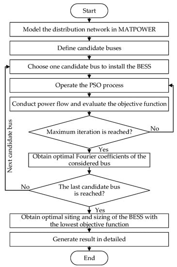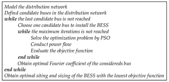 The procedure of the optimal siting and sizing of the battery energy storage system (BESS) can be described as the following steps: