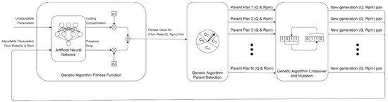 In the second phase of the system, a genetic algorithm-based optimization tool was developed that takes cuttings concentration and frictional pressure loss values acquired from an ANN model and tunes them to find the optimal flow rate and rpm settings for any given drilling process. In Appendix A.2. the general structure of genetic algorithms are presented.