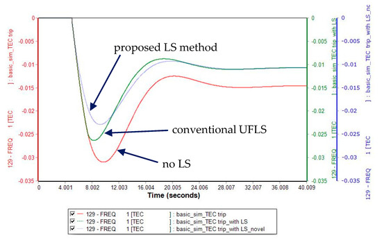 | Scenario | ∆Pgen_loss, MW | ∆Pload_UFLS, MW | Conventional UFLS fmin, Hz | ∆PSC, MW | Novel Approach LS with K = 1 + Additional Load Shed by Conv. UFLS | Novel Approach LS with K = 2 + Additional Load Shed by Conv. UFLS | Novel Approach LS with K = 3 + Additional Load Shed by Conv. UFLS | |||