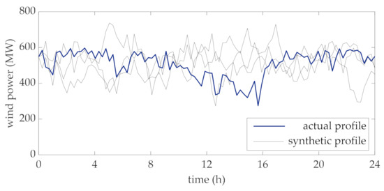 - the actual power profile is statistically analysed as an Ornstein-Uhlenbeck process and a number of synthetic profiles are generated;