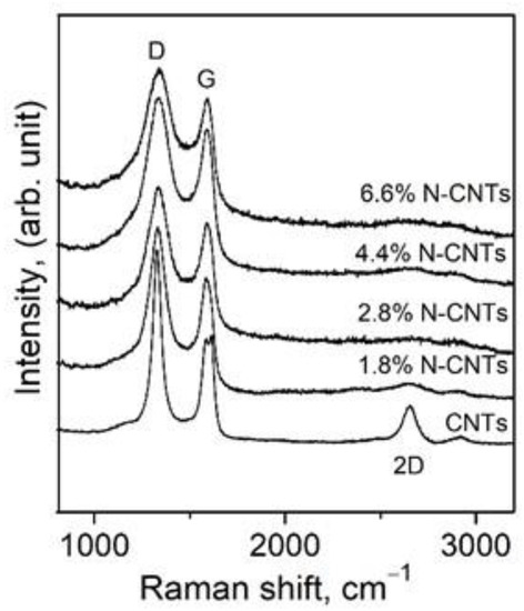 Raman spectra of CNTs and N-CNTs.