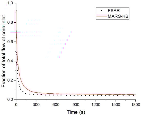 Figure 4 presents the total mass flow fraction between the calculation and FSAR results. The FSAR results were identified as being more conservative than the regulatory calculation in terms of the total mass flow rate into the core inlet.