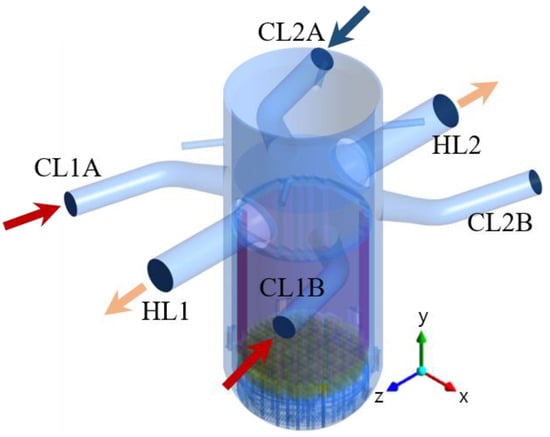 Schematic domain of reactor vessel of APR1400 (CL: cold-leg, HL: hot-leg).