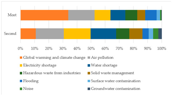 Energy/environmental problems considered to be of most or second most importance.