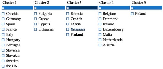All countries clustered with Romania in any of the generated results were considered for a more focused view beyond the data of relevance, best practices, and use cases.