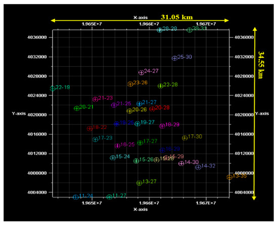 The drilled wells in the coalbed methane (CBM) gas field from where the seismic data and core samples were retrieved.