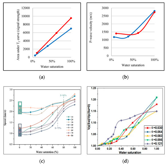 The results of the laboratory measurements of the elastic and magnetic resonance responses of the coal samples at three states of fully saturated, partially saturated, and irreducible saturation.