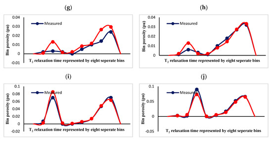 (a–j) Measured and predicted T2 relaxation curves at ten example points of one studied well. Such relaxation curves could be synthesized for every desired part of the reservoir using the established models and the introduced method.
