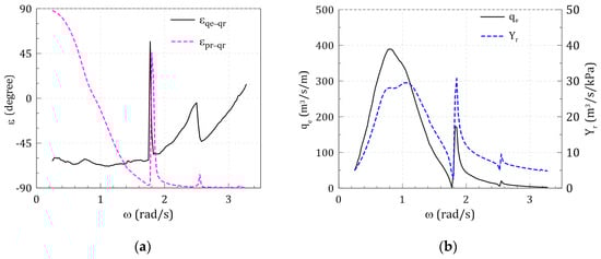The phase difference can be estimated based on the physical process of the coupled turbine–chamber interaction in time under the constraint that total airflow, which is the sum of the excitation and radiation airflow, is in-phase with the radiation pressure. and showed frequency-dependent characteristics. is sensitive to the excitation frequency in the low-frequency side ( < 1.8 rad/s), where the fluid sloshing mode is dominant. showed the opposite pattern, which was sensitive on the high-frequency side ( > 1.8 rad/s).