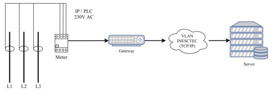 This gateway’s main function conveys the meter measurements to the server, where the data are permanently stored. The gateway is required since the meters use PLC (power-line communication) technology and the server only communicates using a TCP/IP (transmission control protocol/Internet protocol), commonly known as the computer network. This network uses the infrastructure previously implemented.