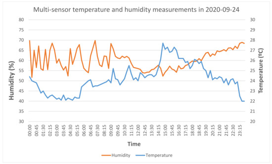 In order to assess the indoor air quality in a workspace, a sensor was installed that is capable of measuring temperature, humidity, and CO2. Furthermore, it was necessary to be able to send measurements in real time using the existing infrastructure (typically wireless network) and to store this data persistently in a database.