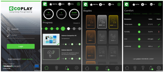 A recent systematic literature review conducted by Paone and Bacher [7] on the impact of building-occupant behaviors regarding energy efficiency and on its influencing methods identified three major stratagies to promote behavioral change: eco-feedback, social interaction, and gamification [8,9]. Although there is no standard definition for gamification, ultimately, various authors converge to define gamification as the use of game elements in non-game contexts to improve user experience and user engagement [10]. Regarding energy applications, major gamification techniques use game elements and mechanics to engage and motivate building occupants to adopt energy-efficient behaviors. Therefore, gamification becomes a central piece of the FEEdBACk project.
