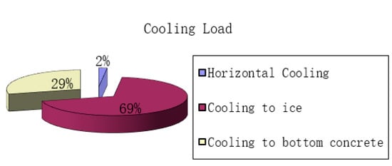 Ice rinks are among the most energy consuming public facilities needing refrigeration, heating, ventilation, and air conditioning. The refrigeration system accounts for almost 43% of the total operational cost for a typical ice rink arena []. Increasing the efficiency of the refrigeration system could potentially save a large amount of annual energy cost. There are several loads in the ice rink [,,]: envelope, radiation, lighting, comfort cooling, heating, convection, re-condensation heat transfer to the ice slab, etc. The optimal ice rink refrigerated floor design could save capital investment cost as well as energy and long-term operational cost.