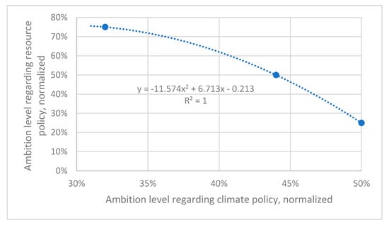 One aim of the presented research is to make a first attempt to identify the possible space for defining policy packages considering both policy targets in the discussed frame. Additional research is needed to generate a better knowledge of how different policy targets interact, and thus to identify in a better way the space for political solutions. For this, a more detailed analysis of the shape of potential policy packages by considering potential policy instruments is recommended. Nevertheless, whereas climate policy targets are clearly communicated, this is lacking regarding other environmental and resource-related targets [41,42]. Consequently, a more in-depth analysis of policy packages would profit from more elaborated policy targets.