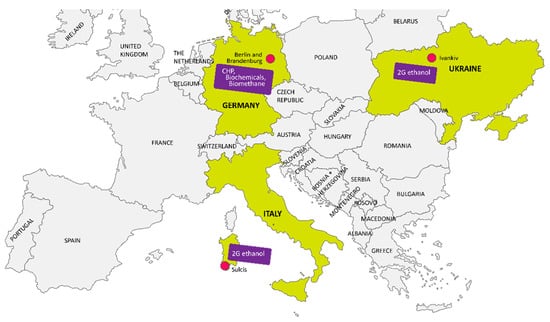 As it was mentioned in the introduction, the supply from energy crops would need to increase to comply with the 2010 National Renewable Energy Action Plans in Europe. One option would be by planting them on MUC lands since they do not induce competition with food/feed. In Italy, the production of 2G ethanol was mainly considered because there was an interest from the industry who already conducted some experiments on a range of energy crops to produce 2G ethanol []. Knowing that the feedstock cost is considered to be the main contributor to the total ethanol production cost [], it was decided to explore 2G ethanol production in Ukraine where feedstock costs are lower.