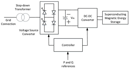 The static synchronous compensator (STATCOM) is a voltage source converter (VSC)-based FACTS device. In addition to a VSC, it consists of a coupling transformer and a controller [35]. A simplified single-line diagram of a STATCOM is illustrated in Figure 6. The STATCOM autonomously regulates system voltage by either absorbing or generating reactive power. Opposite to the SVC, the STATCOM output current can be regulated independently from the AC system voltage. STATCOM has a dynamic response time of less than 10 ms compared to the SVC, which has a response of around 20 to 30 ms. Over other shunt-type compensators, the STATCOM has a possible active harmonic filter capability and offers equal lag and lead output. It also provides fast response and continuous reactive power control.