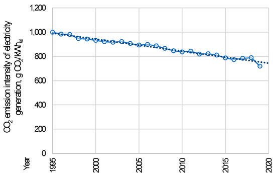 - European Environment Agency. Greenhouse Gas Emission Intensity of Electricity Generation. (WWW Database). Available online: https://www.eea.europa.eu/data-and-maps/daviz/CO2-emission-intensity-6#tab-chart_2_filters=%7B%22rowFilters%22%3A%7B%22ugeo%22%3A%5B%22Poland%22%5D%7D%3B%22columnFilters%22%3A%7B%7D%7D (accessed on 18 February 2021).