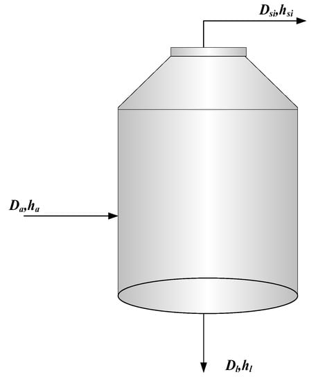 As shown in Figure 5, is the mass flow rate of inlet water (kg/h), is the specific enthalpy value of inlet water (kJ/kg), is the mass flow rate of saturated steam at the outlet (kg/h), is the specific enthalpy value of saturated steam at the outlet (kJ/kg), is the mass flow rate at the outlet drain water (kg/h), and is the specific enthalpy value of the outlet drain water (kJ/kg).